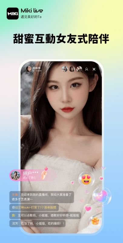 Miki Live 是一款集多种趣味玩法于一体的娱乐平台,拥有海量真人用户,致力于通过直播带来丰富的娱乐体验。用户可以享受礼物互动、真人 PK、欢乐整蛊、锦鲤垂钓和祈愿屋等多种玩法,满足不同用户的娱乐需求。在这里,用户不仅能发现有趣的内容,还能获得更多关注和陪伴。