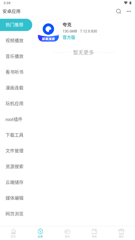安卓软库是一款资源库软件,可下载一些游戏或者是软件,都是免费的无付费内容,无论是影视,音乐漫画小说,还是一些热门游戏,都可以通过此平台进行下载,连接基本上都是跳转网盘的,功能非常全面需要的可以下载使用。