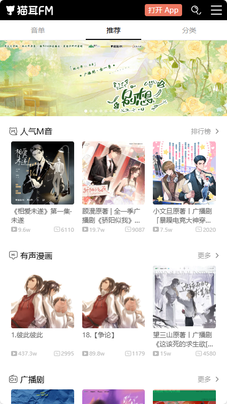 1、从本站下载猫耳FMapp,安装后进入首页,找到【广播剧】模块