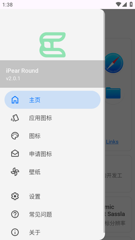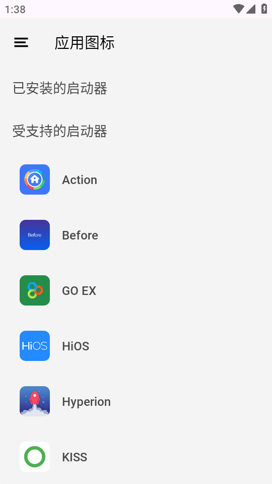 你可以打开导航抽屉,然后选择“应用图标”。从列表中选择你的启动器。如果列表中没有包含你所使用的启动器,但图标包的确是兼容它的(参考GooglePlay商店中的描述里所写的受支持的启动器),你可以从该启动器的设置中手动应用图标包。