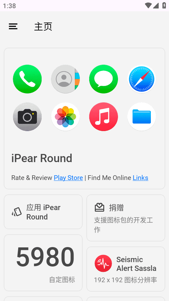 想在在安卓手机上仿真成苹果界面吗,那么先从应用图标开始吧,iPear Pro图标包简称iPear图标它是苹果18上面的高清图标,包含了4800个图标,还有350张超精美的壁纸可以随意选择设置使用,软件搭配启动器一起使用效果更好,设置更加便捷,想要安卓变苹果的朋友必备。