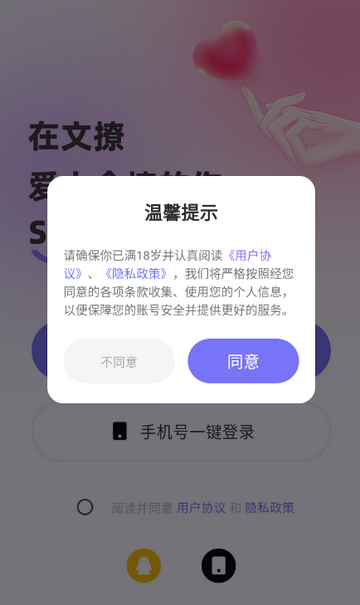 1、打开文撩app,点击同意隐私政策