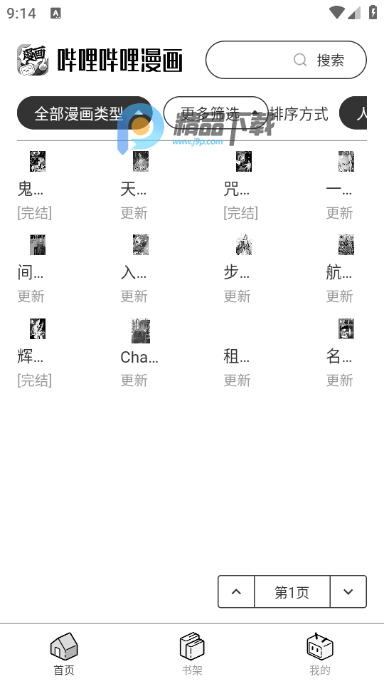 3、打开软件后可以看到全部的漫画类型,也支持搜索查找。