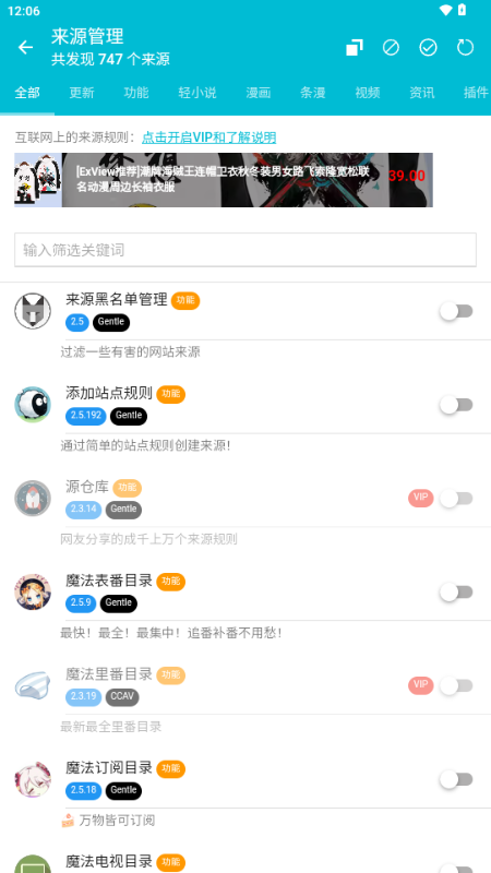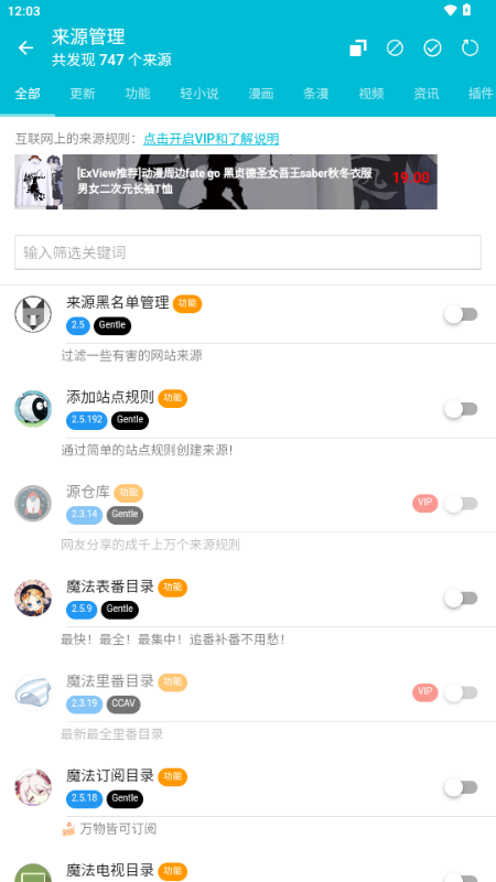 ExView 是一款聚合多款 ACGN 相关网站资源的浏览器应用,涵盖漫画、视频和轻小说等多种分类,包含恋爱、玄幻、热血等丰富题材。用户可以直接访问数十个主流漫画平台的内容,享受便捷的阅读体验。