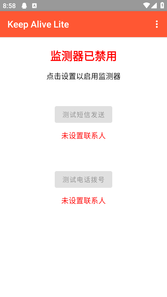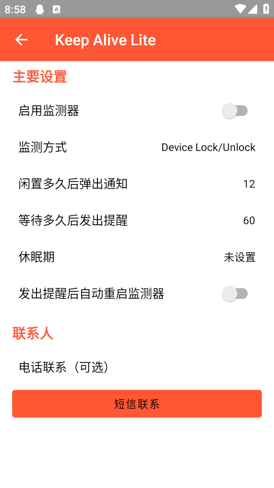 最近非常火的死了么app也有安卓版本,它是免费开源的软件Keep Alive Lite,软件中通过设备使用来提醒通知他人,你可以自定义消息内容,设置联系人电话,可以向一位或者多位用户发送,特别适合独居老人或者遇到紧急情况时的安全保障,不用进一步交互,直接设置即可。
