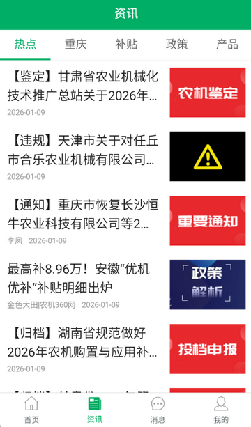 6、政策资讯推送,同步重庆本地农机补贴政策及报废更新等相关通知