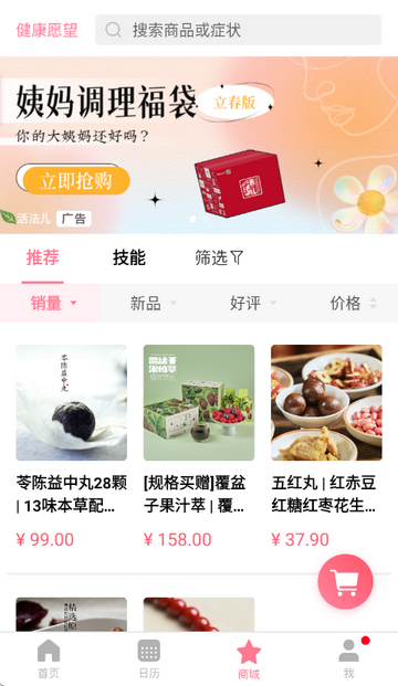 4、点击商城,可以看看吃什么可以调理