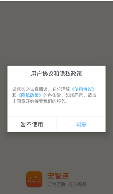 1、打开安智连app,点击同意隐私政策