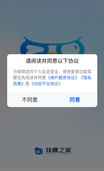1、打开扶鹰之家app,点击同意隐私政策
