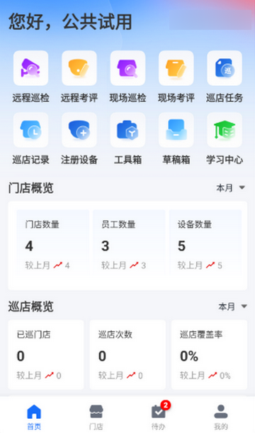 1、巡检考评:支持线上巡检、线上考评及现场巡检、现场考评,覆盖多场景运营核查需求。