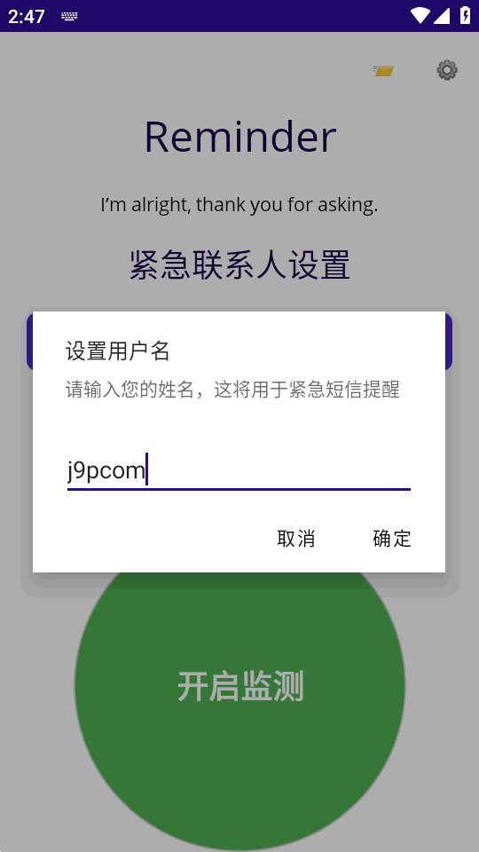 安卓手机上的另一款死了么app软件,Sports Monitoring Reminder安卓版又名运动监测提醒软件,它是网友自制的发消息提醒通知应用,通过手机自带的陀螺仪,当手机静置未有运动就会通知消息提醒,到达提醒次数后就会自动发送短给指定的联第人,用于独居老人提醒非常方便。不用签到很实用。
