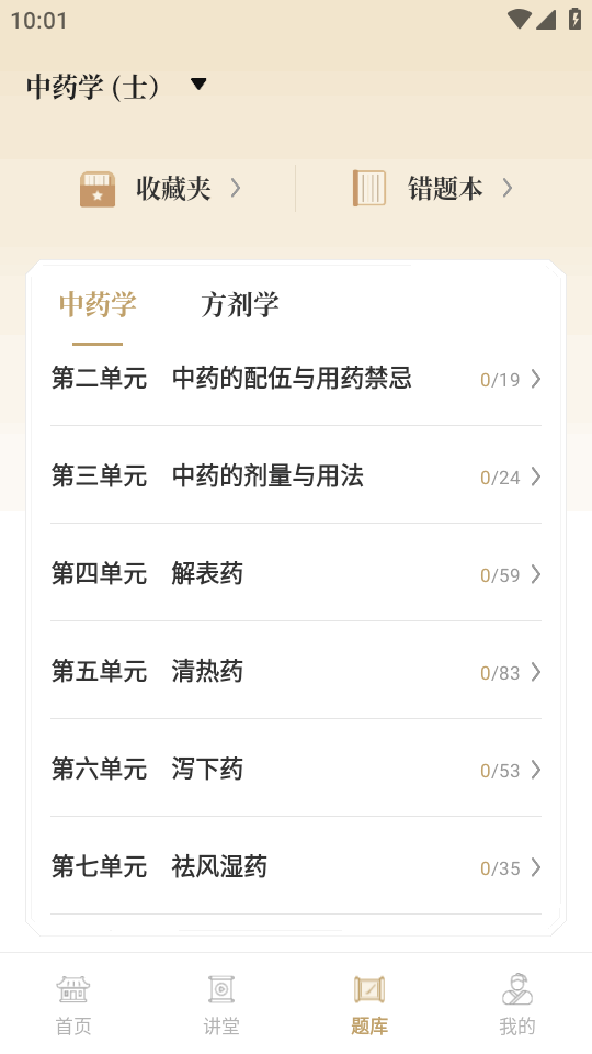 4、点开题库可以查爬墙 各种中药学和方剂学的题库内容。