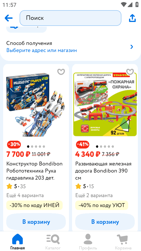 儿童商店“儿童世界”(Detmir)的应用程序,所有商品均来自分销网络的商店。使用手机购买玩具、衣服和配件。