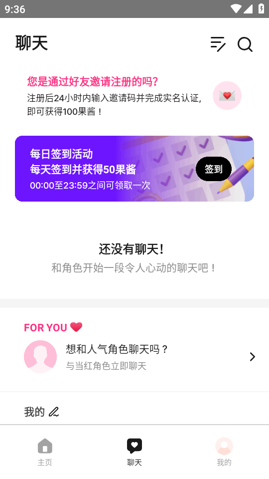 1、打开软件后点主页,选择一个想要聊天的角色。