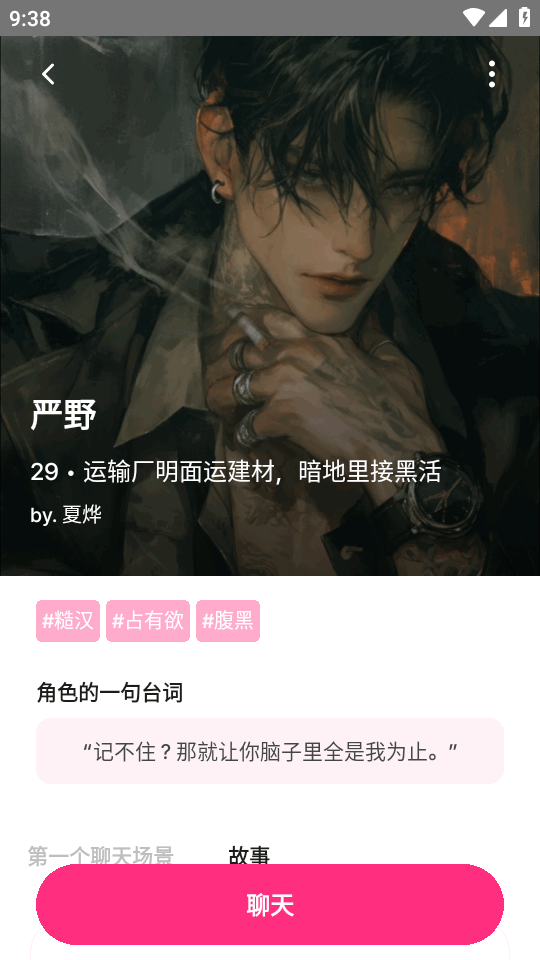 2、点开后可以查看角色台词和故事设定,点聊天即可开聊。