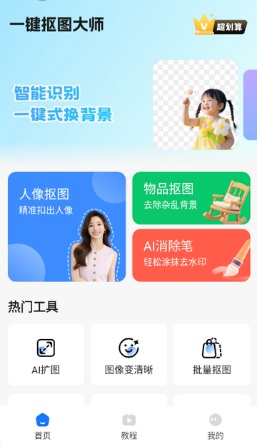 这是一款手机端图片抠图编辑软件,提供智能抠图、水印消除等功能,支持人像与物体抠取、背景更换,满足用户多样化图片处理需求,是实用的移动端图片编辑助手,快来试试吧,更多惊喜等你探索。