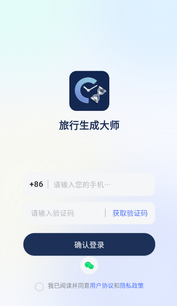1、打开旅行生成大师app,点击同意隐私政策