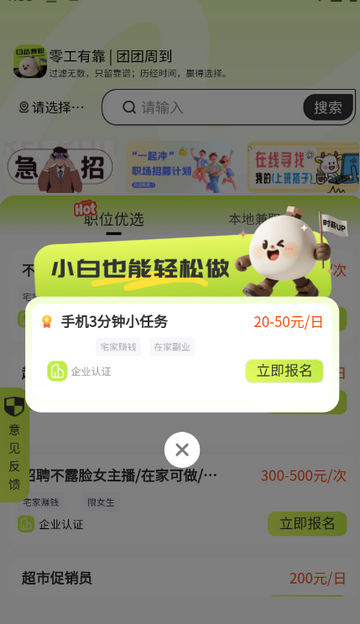1、线上线下双覆盖,无需切换平台,一站式获取多元兼职选择。