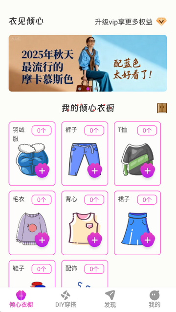 2、进入倾心衣橱,可以加入自己有的衣服进行分类