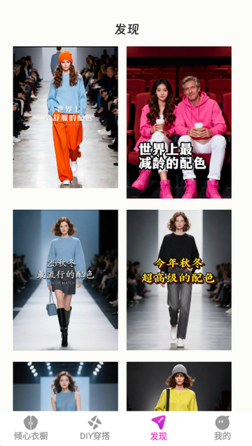 4、穿搭灵感阅览,提供海量穿搭搭配信息,在线查看搭配效果。