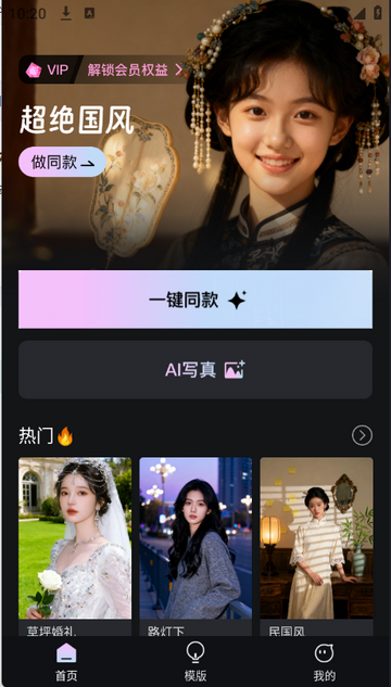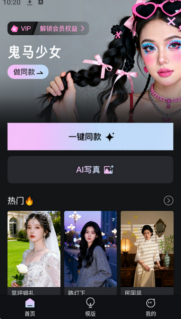 2、进入首页一键换同款/AI写真等