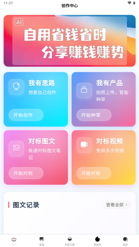 输入关键词,Ai智能优化,生成标题、正文、话题,智能匹配爆款模板。还有智能生图+海报创作,爆款灵感永不枯竭!