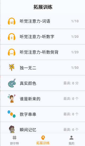 3、点开拓展训练,可以练习注意力等