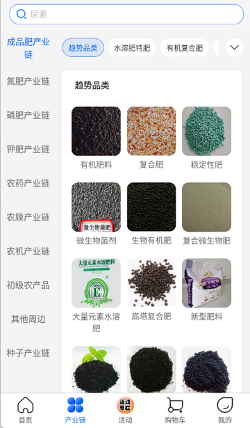 肥多多aqpp主要的交易是产品包括氯化铵、尿素、磷酸一铵、氮肥、磷肥、钾肥、复合肥、有机肥、水溶肥、磷化工等数十种原材料。