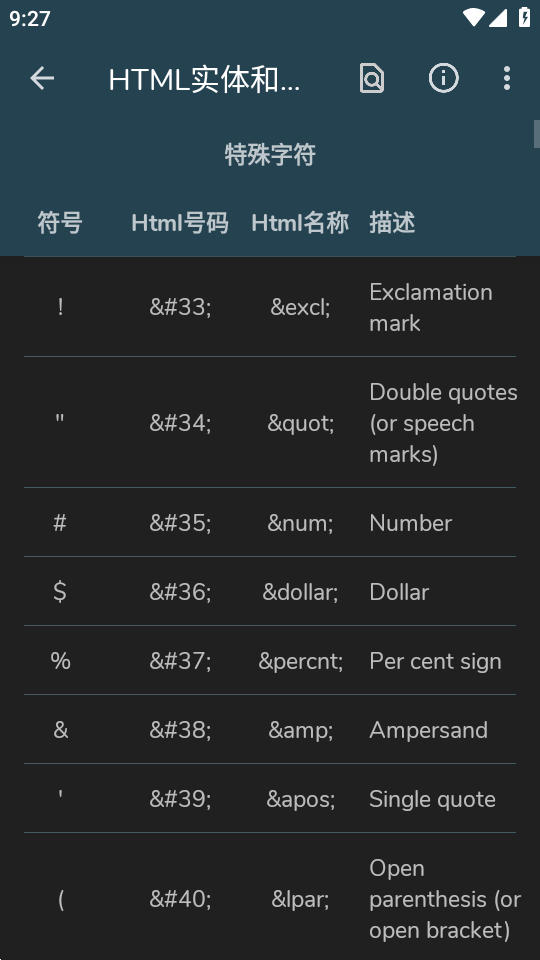 3、打开资料页面,整合了丰富的编码,代码和特殊字符内容。