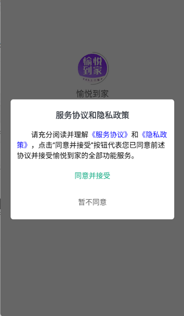 1、打开愉悦到家app,点击同意隐私政策