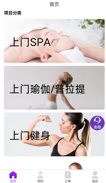 3、 点击预约们可以预约不同的项目等