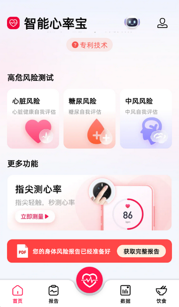 智能心率宝APP是郑州俊盈网络科技有限公司研发的健康管理工具,专注于身体健康监测、测量、报告查看及饮食健康安排,整合多维度健康数据记录与加密保护功能,为用户提供便捷、安全的个人健康数据管理解决方案。