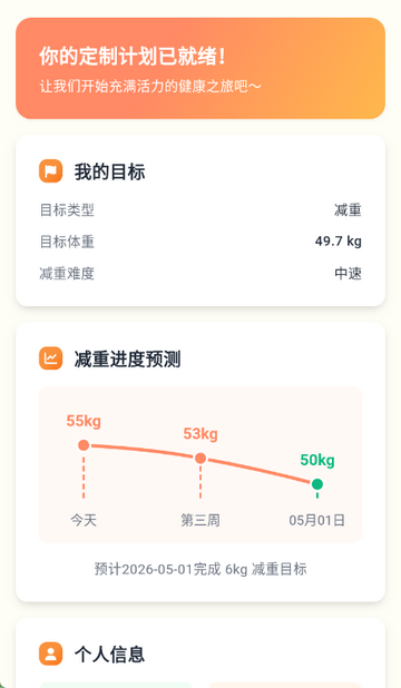 2、数据与计划联动,饮食、运动数据实时同步,动态调整瘦身方案。