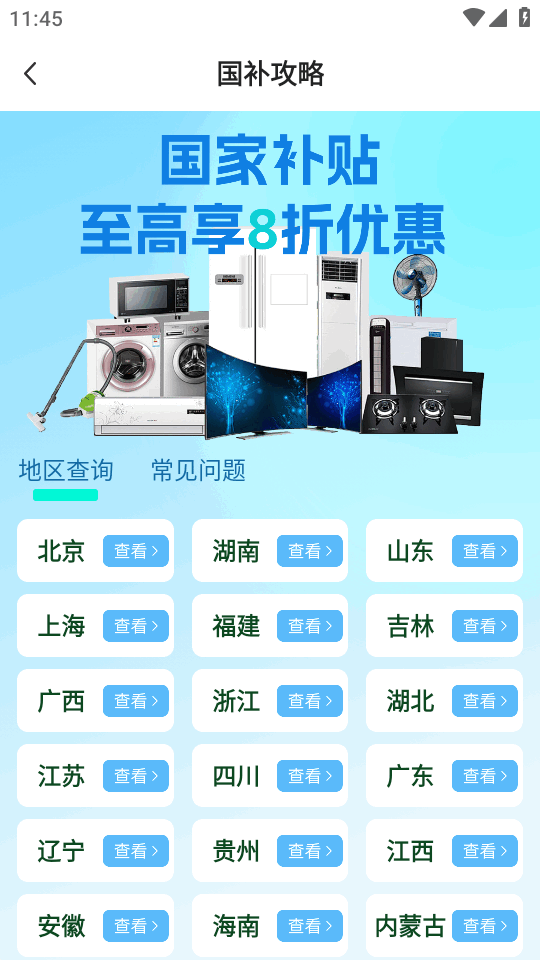 1、打开登录app就可以实时查看各地的国补政策信息