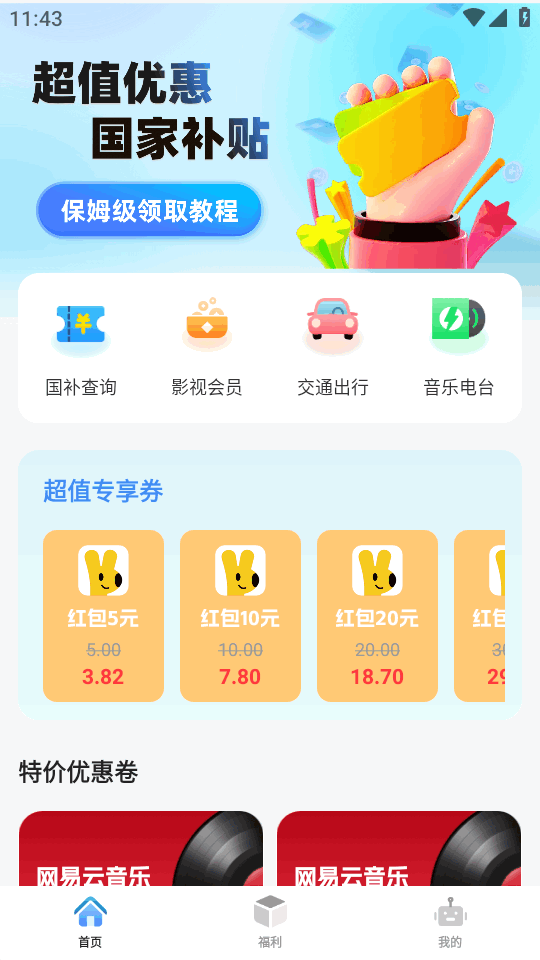 专门为用户生活提供省钱帮手的应用,闪付补贴助手app整合了各种影视会员,交通出行,音乐电台等平台的优惠内容,通过此平台可以购买到更加便宜的会员服务,还有各种美食卡券可以领取,先到先得,抢完为止,想省钱的可以看看。