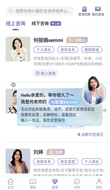 2、服务个性化鲜明,拒绝通用方案,精准匹配用户心理成长需求。