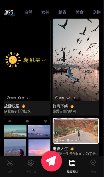 3、热门素材库,提供海量视频素材、酷炫特效及多样滤镜风格。