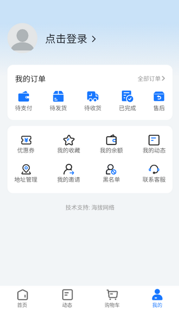 4、点击我的,登录后可查看我的订单,我的收藏等功能