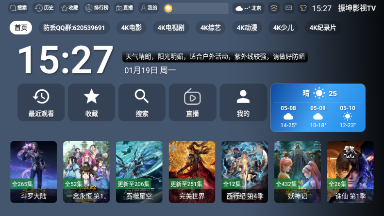 振坤影视 TV 是一款专为智能电视和电视盒子设计的影视播放软件,提供海量的影视资源,包括电影、电视剧、综艺和动漫等多种类型。它以便捷的操作、高清的画质和流畅的播放体验为用户带来优质的观影感受,让用户无需出门即可享受丰富的影视内容。