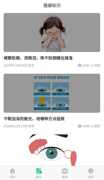 3、点击知识,可学习眼科健康等