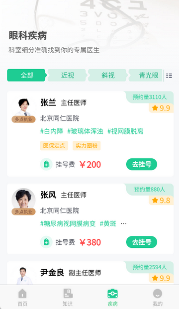 1.覆盖眼科知名专家号源;