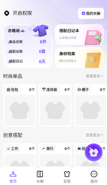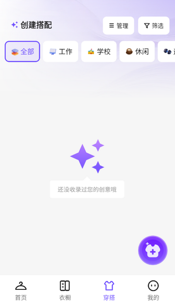 1、打开AI衣橱管理app进入首页,点击右下角+号