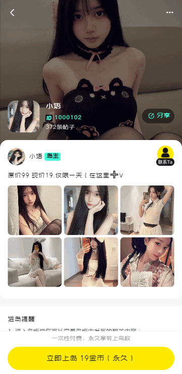 4.本平台不提供任何违法及色情内容,如您发现岛屿内存在以上内容,请联系人工客服举报处理。