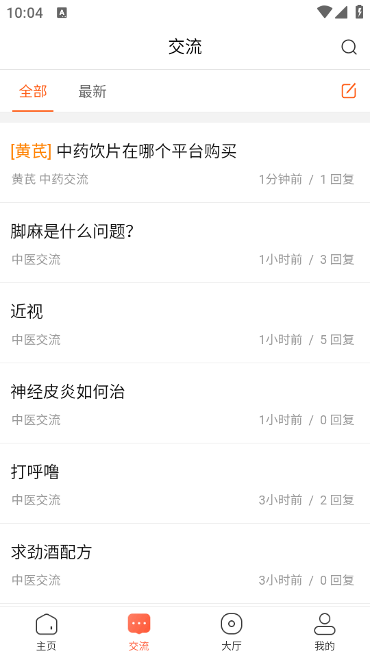 5、点开中医交流可以查看到各种评论和浏览问题。