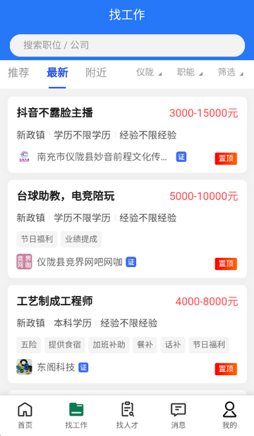 3、点击找工作,可看看最近/附近有什么新工作推荐