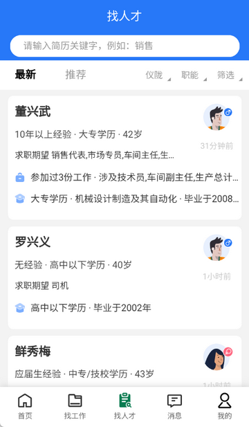 3、企业用户可发布招聘岗位,筛选求职者简历,对接合适人才。