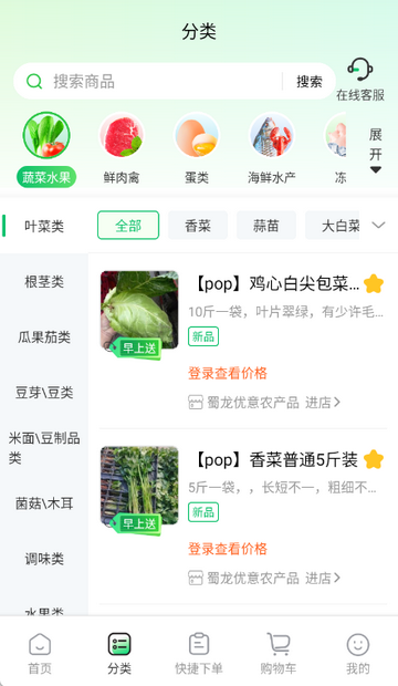 3、点击分类,可查看各类蔬菜等