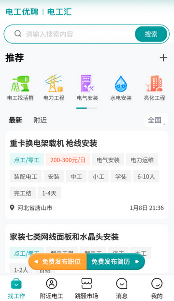 2、同时满足电工找活与招聘方招工需求,实现行业供需闭环。