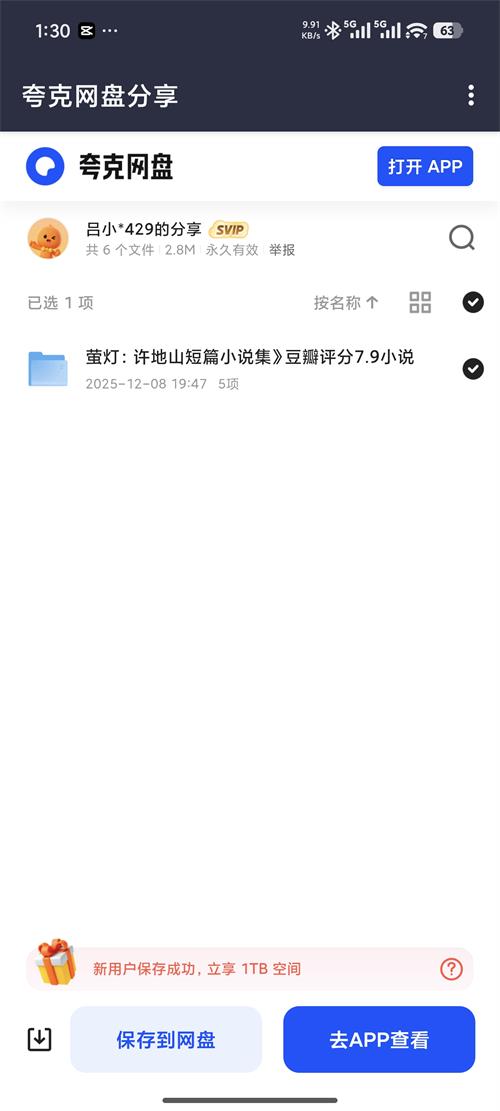4、支持将搜索到的资源轻松保存至用户自己的网盘账户。