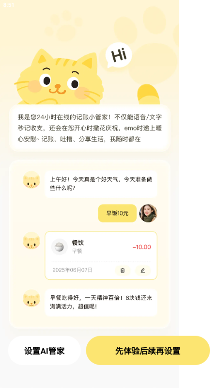 猫猫记账 APP 是一款兼具实用性和趣味性的记账工具,通过边唠嗑边记账的方式,让用户在轻松愉快的氛围中完成收支记录。它支持创建专属小角色,为每笔收支赋予仪式感,让记账变得生动有趣。账单分析功能以清晰图表直观呈现收支情况,帮助用户告别糊涂账。